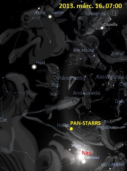 A PAN-STARRS március 16-án a Halakat elhagyva a PEGAZUS szárnyánál jár.